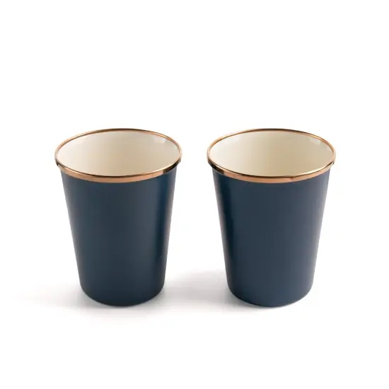 The Barebones 2-Tone Collection combines playful design with timeless elegance. The mix of deep navy and ecru gives this enamelware a fresh, nautical feel, while the rose gold rim adds a touch of refined luxury.