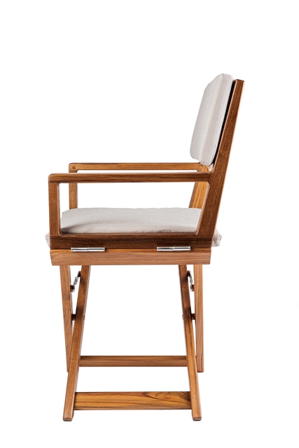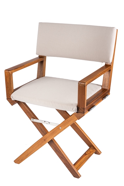 ARC Marine teak regisseursstoel The Edge met kussenset in de forza zand. Bent u op zoek naar een comfortabele, stabiele bootstoel? De ARC Marine regisseursstoel The Edge staat bekend om de kwaliteit, het zitcomfort en het gemak waarmee u de stoel kunt inklappen. Ingeklapt neemt de stoel maar weinig ruimte in dus deze is bijzonder geschikt voor gebruik aan boord. Deze teakhouten regisseursstoel met zandkleurige kussens is modern en strak afgewerkt en geeft uw kuip of kajuit een luxe uitstraling.