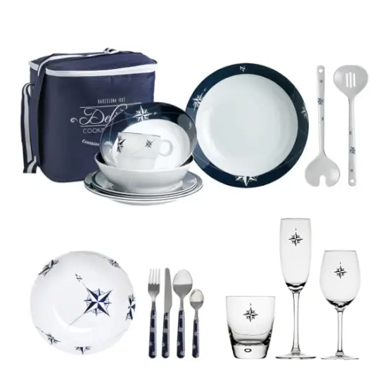 | Deze set bestaat uit | 6 champagneglazen, 6 wijnglazen, 6 waterglazen, 6 kommen, 1 slaladeschaal, 24-delige bestekset, 1 servieset (bestaande uit 6 dinerborden, 6 soepborden, 6 ontbijtborden, 6 mokken, 1 tas) |